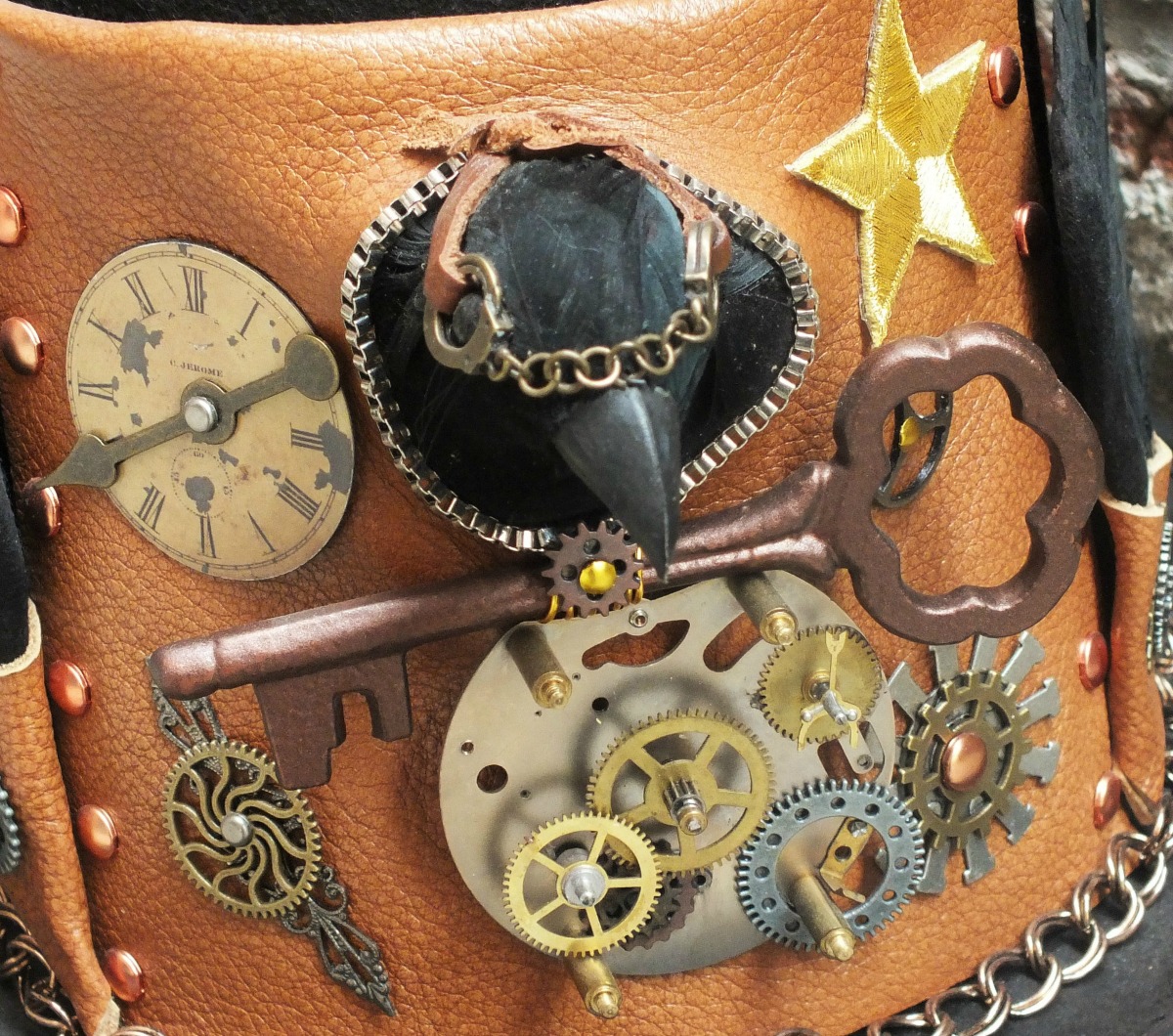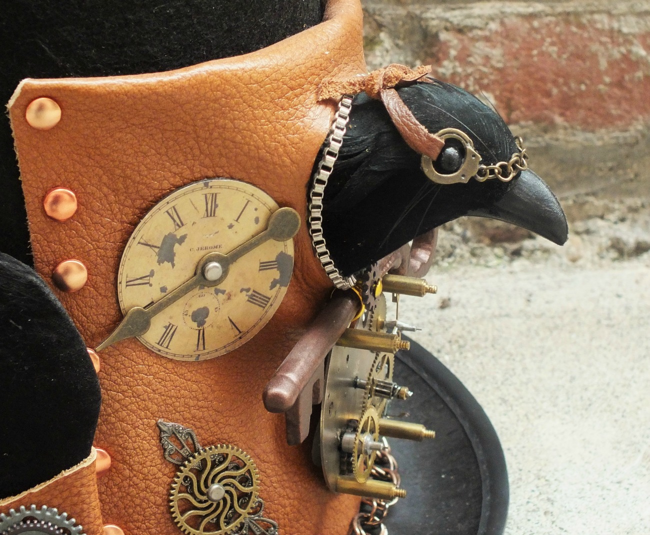 "Clockwork Raven" Unique Handmade Steampunk Hat with Raven by Lisa Benshoof, OOAK
