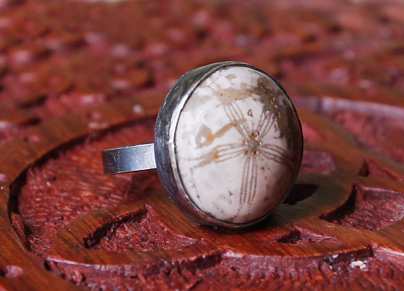 Sand dollar Fossil and sterling silver handmade ring by Thornbird Studios